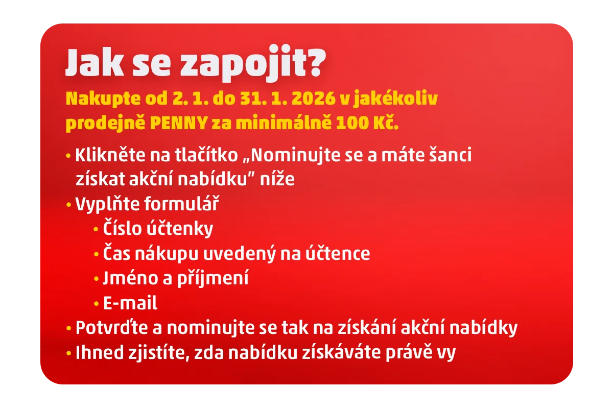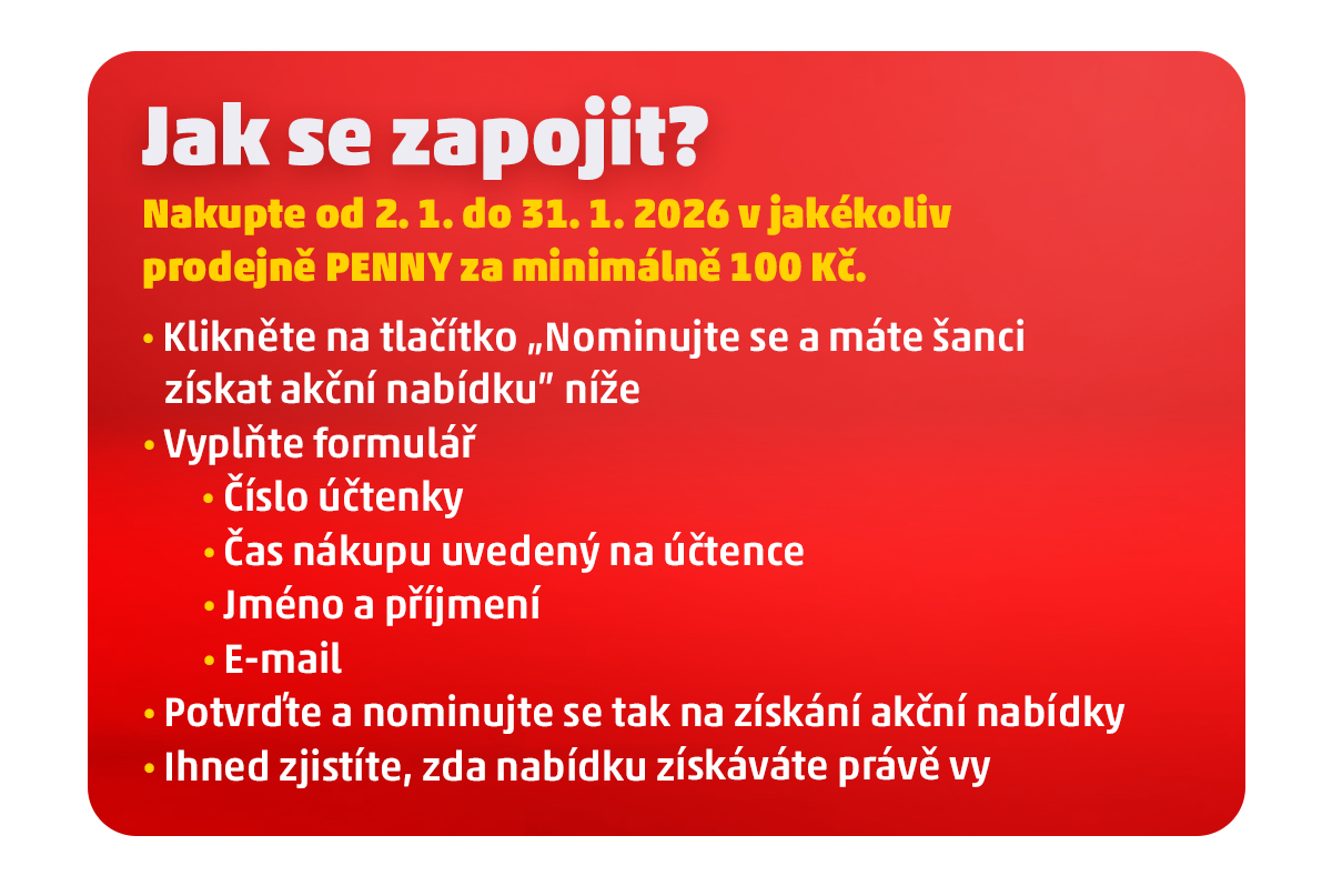 👉 Přihlaste se od 2. do 31. ledna 2026 a užijte si start do nového roku s PENNY! 🎉✨