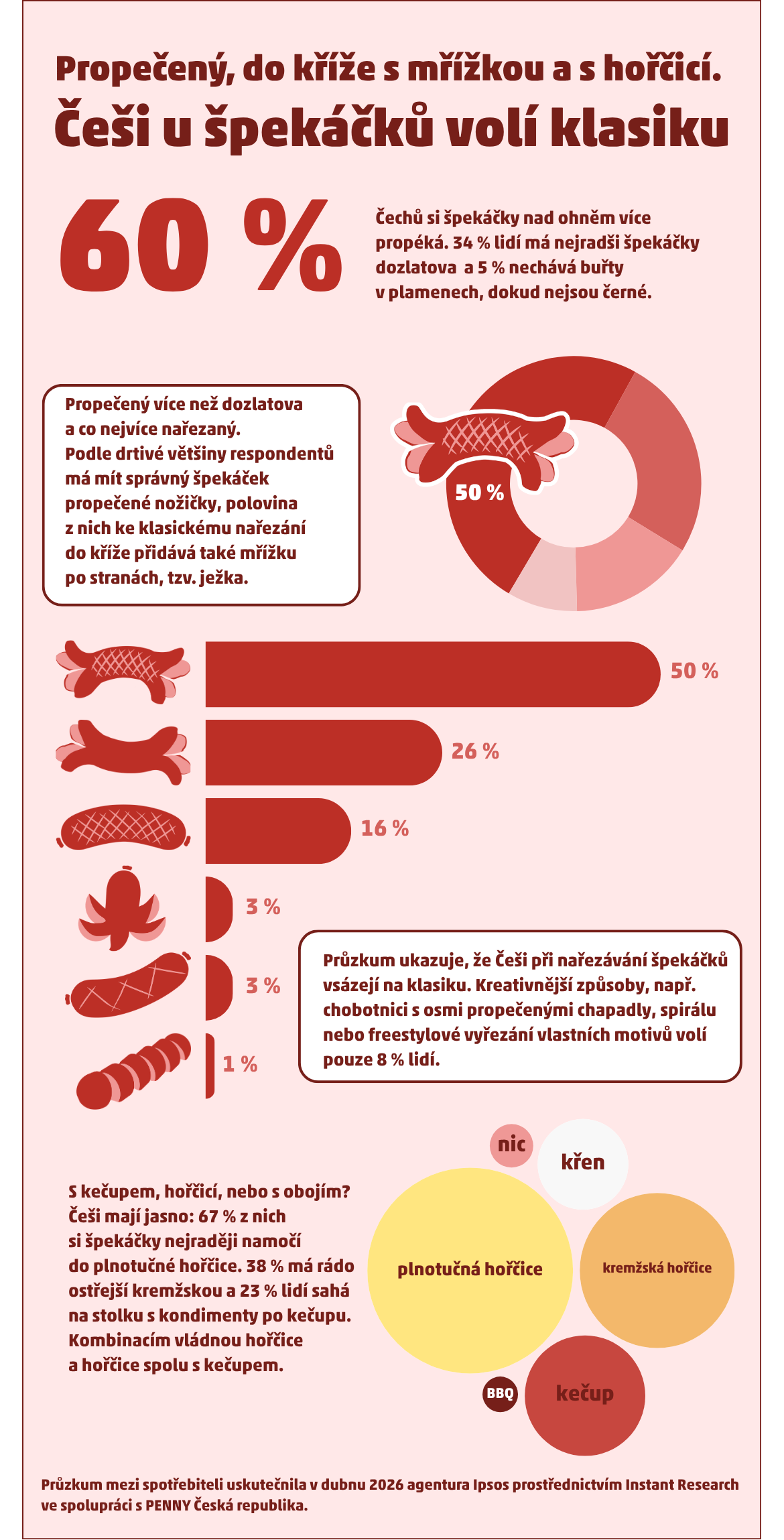 „Na Čarodějnice se ukazuje, že i zdánlivě obyčejný špekáček má v českých domácnostech svoje pravidla. Někdo nedá dopustit na kříž, jiný na ježka, někdo chce hořčici, jiný kečup. V jednom se ale většina lidí shodne: opékání má být hlavně příjemný společný zážitek a chutný špekáček k němu zkrátka patří,“ uzavírá Petr Chvojka.