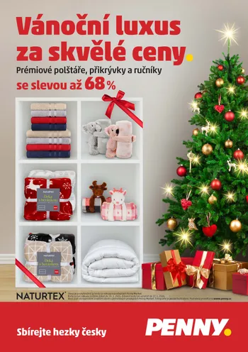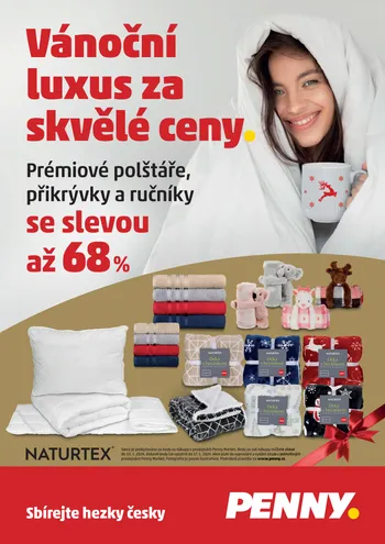 Už potřetí připravilo PENNY na závěr roku unikátní věrnostní akci na produkty NATURTEX. Tentokrát se mohou zákazníci od 19. října těšit na hřejivé deky pro velké i malé, polštáře, přikrývky, chrániče matrací nebo kvalitní bavlněné osušky a ručníky, a to se slevou až 68 %.