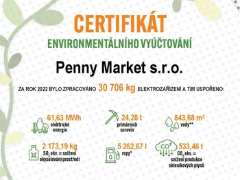 Společnost PENNY předala kolektivnímu systému ASEKOL v roce 2022 k recyklaci celkem 30 706 kg elektroodpadu. Díky tomu se podařilo uspořit 61,63 MWh elektřiny, 5 262,67 litrů ropy, 843,68 m3 vody a 24,28 tun primárních surovin. Pro porovnání, v případě ropy se jedná o množství, z něhož by se vyrobil benzín, na který by běžný osobní automobil ujel 77 632 kilometrů, a v případě vody je to množství potřebné na běžné osprchování 11 325 lidí. Ušetřená energie znamená 3letou spotřebu 6 rodin žijících ve standardním bytě. Navíc PENNY snížilo emise skleníkových plynů o ekvivalent 533,46 tun CO2 a produkci SO2, který zapříčiňuje okyselování prostředí, o ekvivalent 2 173,19 kg.