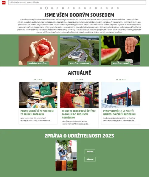 Všechny své aktivity na poli udržitelnosti představuje při příležitosti zveřejnění Zprávy o udržitelnosti 2023 diskontní řetězec PENNY také na nových internetových stránkách WWW.POMAHAMEHEZKYCESKY.CZ a současně na svých stránkách WWW.PENNY.CZ. Ve třech sekcích, které odpovídají třem pilířům strategie udržitelnosti, najdou návštěvníci přehled o nejzásadnějších aktivitách společnosti v oblastech společenské odpovědnosti, energetických úspor i kvality potravin.