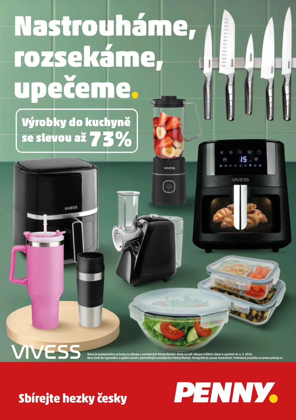 Společnost PENNY Market zahajuje nový rok oblíbenou věrnostní kampaní, která potrvá od 12. ledna do 4. března 2026 a zákazníkům umožní vybavit si domácnost kvalitními kuchyňskými produkty značky VIVESS se slevou až 73 %. Nabídka zahrnuje praktické spotřebiče, kuchyňské nože, skleněné dózy a dvě atraktivní novinky v podobě termohrnků.