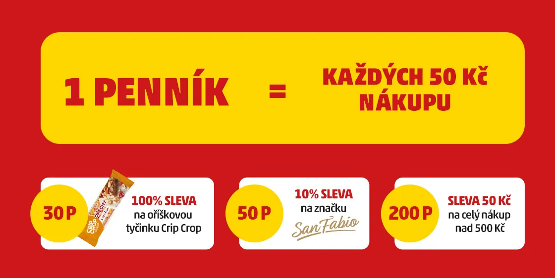 ✔ Sbírejte a šetřete – čím víc PENNÍKŮ, tím větší slevy!