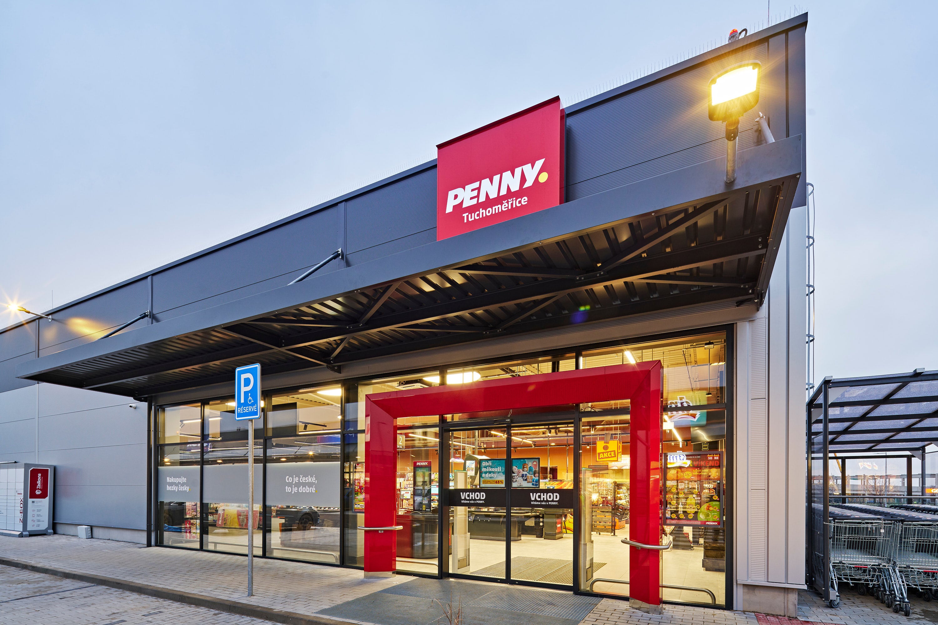 Prodejna PENNY v Tuchoměřicích má prodejní plochu 787 m². Zákazníkům jsou k dispozici 4 klasické pokladny a komfortní parkování přímo v rámci retail parku. Otevřeno bude každý den od 7:00 do 20:00 hodin.