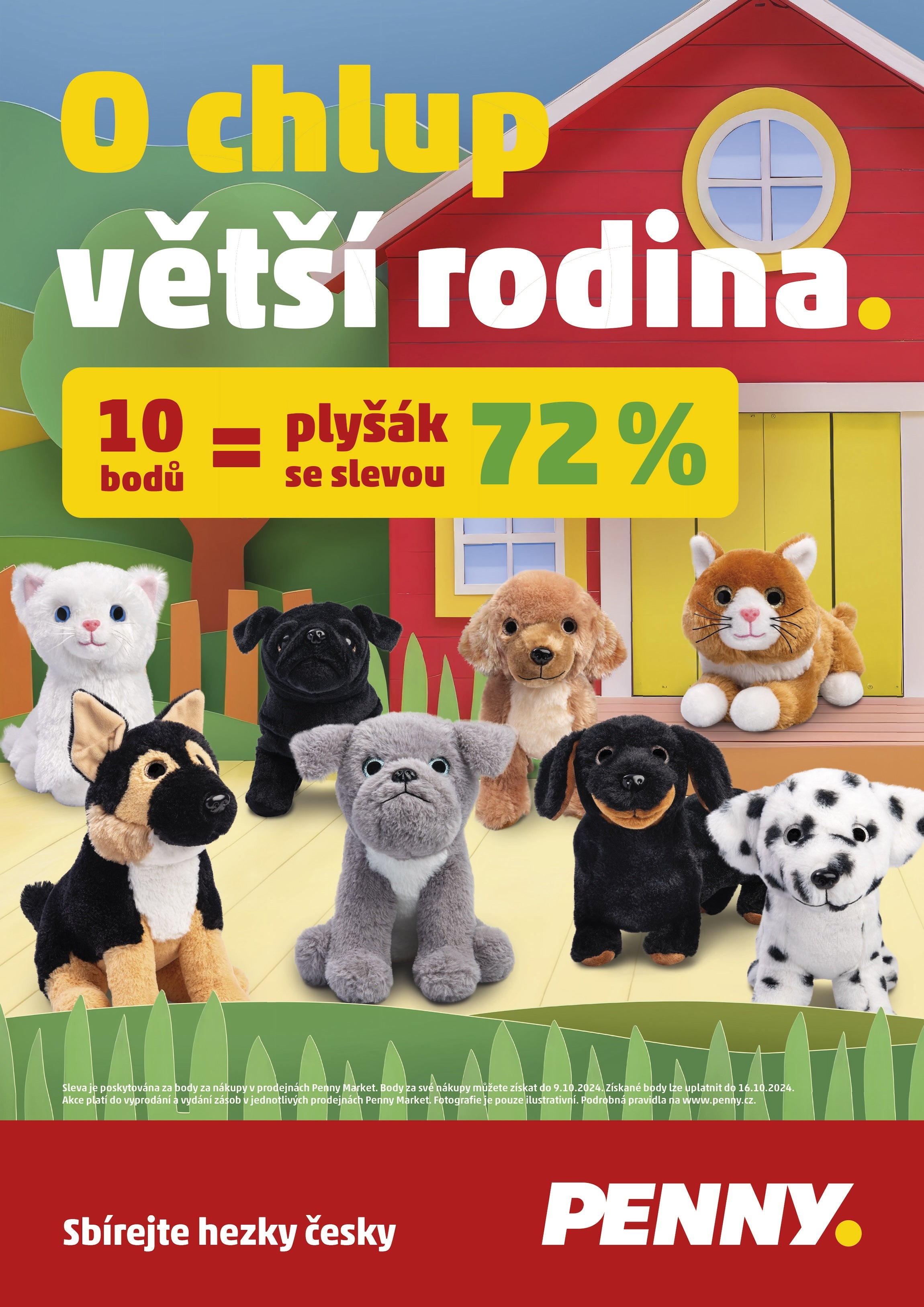 PENNY spouští novou věrnostní kampaň s názvem “O chlup větší rodina.” Rexík, Alík, Micinka, Hugo, Fousek, Haryk, Beník a Piškot, těchto 8 plyšových zvířátek je součástí jedinečné kolekce, kterou lze pořídit se slevou 72 %. Kampaň potrvá od 22. srpna do 9. října 2024.