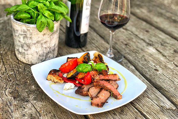 Nakonec hotové a odpočinuté maso nakrájejte na tenké plátky, dejte na prkénko a přesuňte na stůl k salátu. Přidejte ještě sklenku vína a pusťte se do toho!