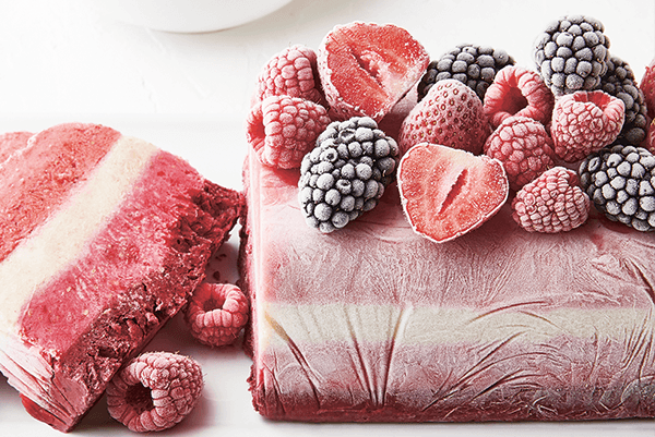 Rozmixujte jahody se 4 lžícemi jogurtu, směs vlijte na dno formy a dejte na 15 minut do mrazáku. Stejným způsobem zpracujte banánovou, malinovou a ostružinovou vrstvu, každou nechte vždy 15 minut zatuhnout v mrazáku.