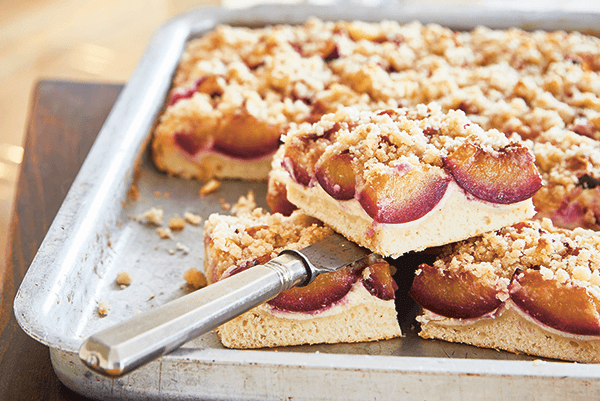 - 600 gvypeckovaných švestek, rozpůlených nebo nakrájených na měsíčky