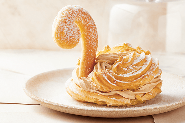 Těsto přendejte do cukrářského sáčku. Na jeden plech nastříkejte 12 labutích krků ve tvaru písmene S, na druhý 12 tělíček ve tvaru srdíčka – tvary si můžete předkreslit zespodu na pečicí papír, aby vám to šlo lépe.