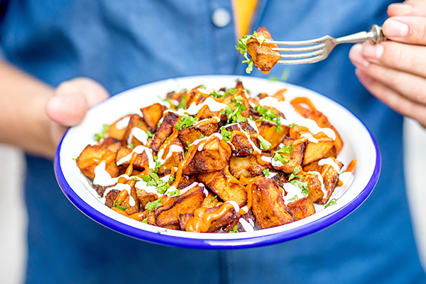 Smažené brambory zakápněte omáčkami, posypejte petrželkou a ihned podávejte.
