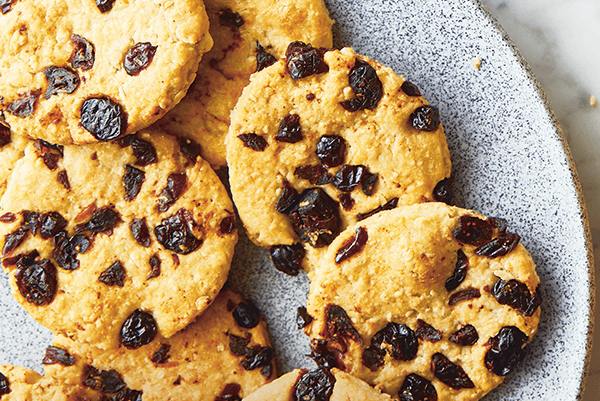 Vykrajovátkem o průměru 8 cm vykrájejte 16 koleček, rozložte na plech vyložený pečicím papírem a pečte 12–15 minut dozlatova.