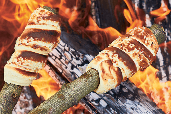 Potřete ho máslem, posypte cukrem a položte na rošt či držte nad ohněm v dostatečné výšce, aby se těsto pomalu opékalo dozlatova.