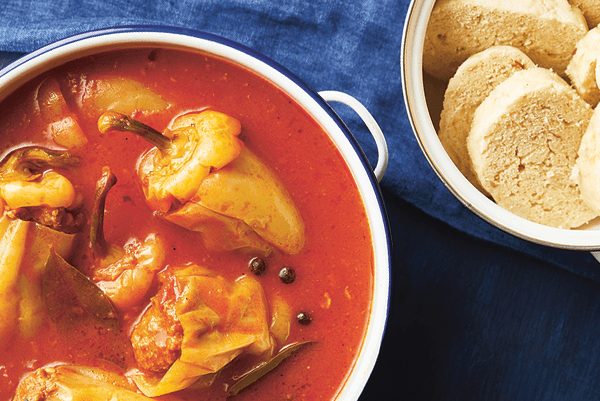 Plněné papriky s rajskou omáčkou a houskovými knedlíky