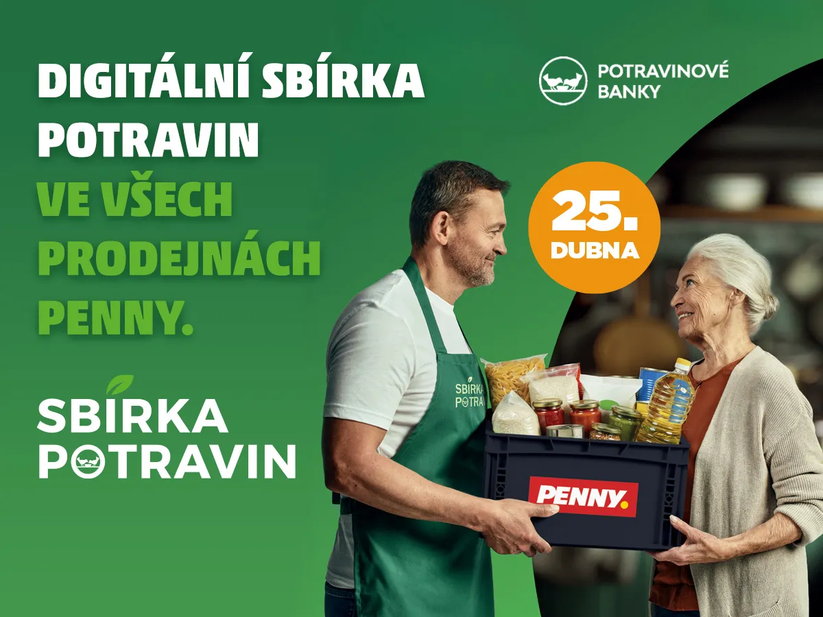 PENNY je dlouholetým partnerem Sbírky potravin a ani letos u ní nebudeme chybět. Přispět můžete 25. 4. 2026 v každé prodejně PENNY po celé České republice. Nemusíte vozit těžké tašky ani hledat sběrný box – stačí při placení nahlásit částku, kterou chcete darovat. Pokladní ji přičte k vašemu nákupu a finanční pomoc se pak dostane přesně tam, kde je potřeba nejvíc.