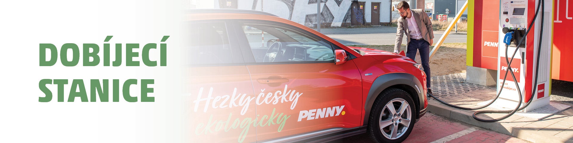 PENNY začalo síť dobíjecích stanic u svých prodejen ve spolupráci s energetickými společnostmi E.ON a PRE budovat již v roce 2018. Aktuálně nabízí tuto možnost více než 60 prodejen napříč celou republikou. Jako první řetězec v Česku PENNY také umožnilo zákazníků dobíjet auta sluneční energií, když právě ve spolupráci se společností E.ON zprovoznilo u prodejny v Praze Lehovci fotovoltaickou dobíjecí stanici. Ovšem i u běžných stanic se jejich ekologický efekt násobí tím, že je do nich většinou dodávána elektrická energie nakoupená z obnovitelných zdrojů. Takže řidiči dobíjejí zelenou elektřinu.