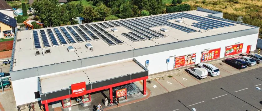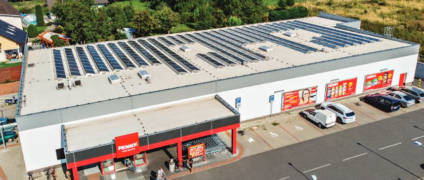 V roce 2018 jsme s finanční podporou z Evropské Unie zprovoznili první fotovoltaickou elektrárnu ve Velké Bystřici. Elektrárna o výkonu 80,6 kWp s přímou distribucí elektrické energie do prodejny Penny Market. Pokryje spotřebu zhruba 40% spotřeby prodejny a šetří tak výrazně životní prostředí. V následujících letech plánujeme pokračovat s dalšími instalacemi, a to jak v rámci prodejní sítě, tak na logistických centrech.