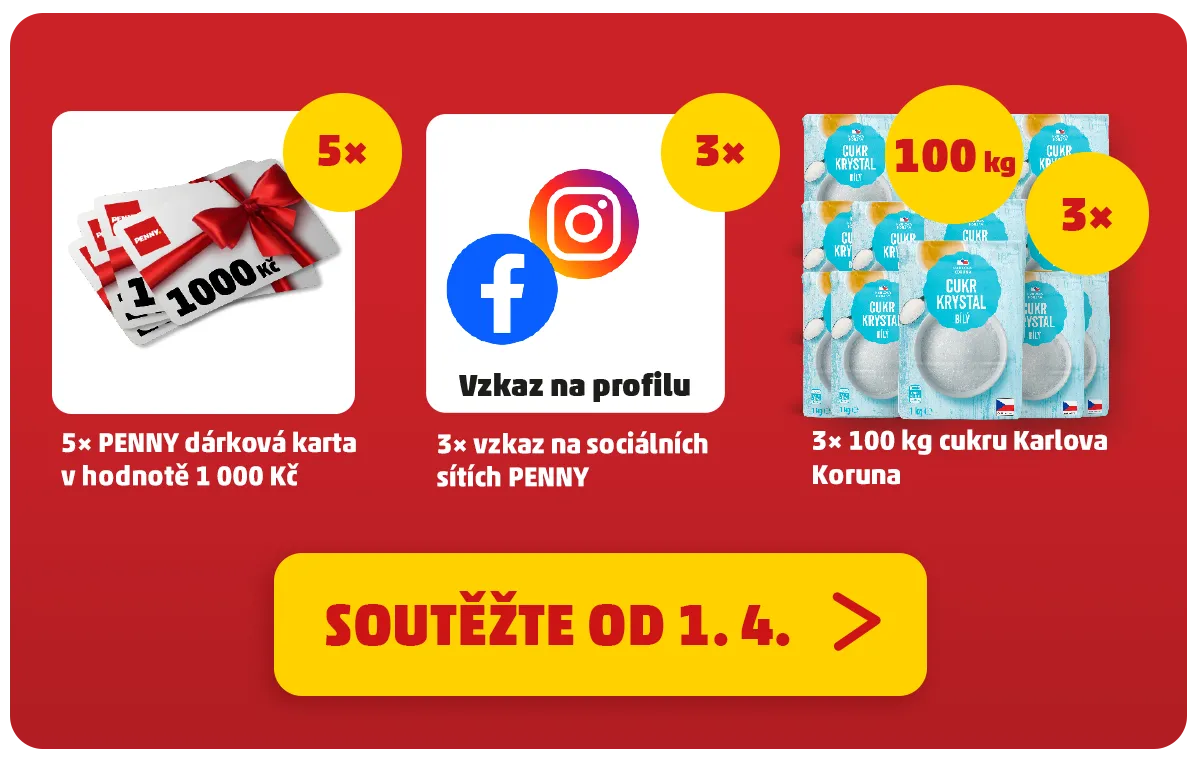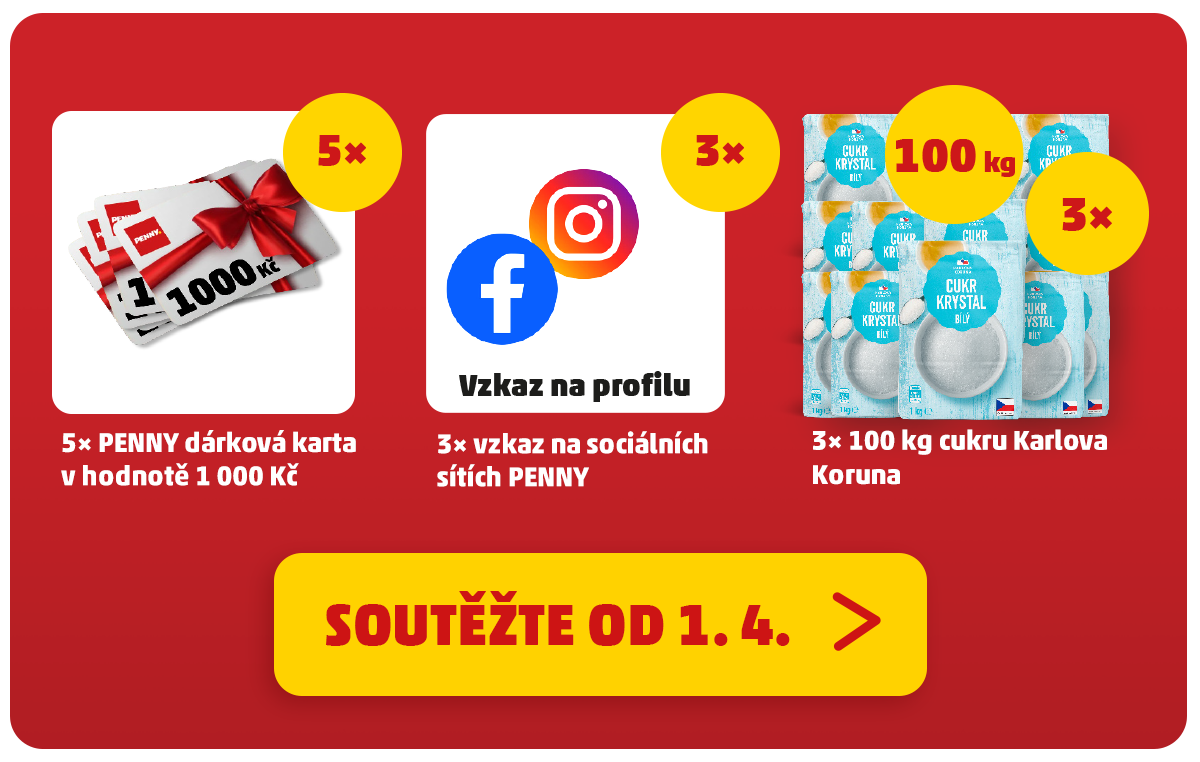 Soutěžte o 5× PENNY dárkovou kartu v hodnotě 1 000 Kč.