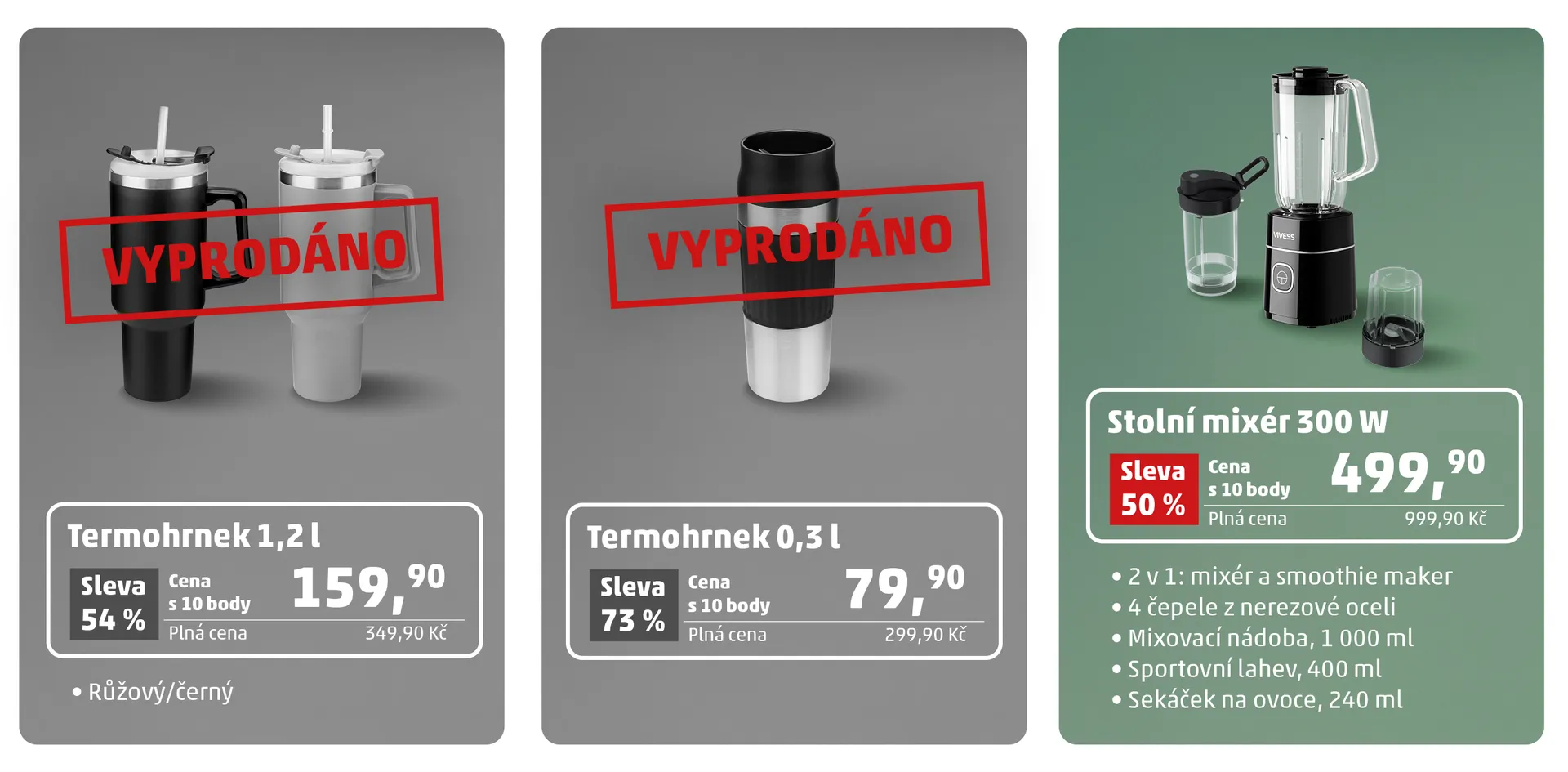 Pro vaše nápoje máme termohrnky v praktických velikostech – ideální pro každodenní použití na cestách. Pokud máte rádi koktejly, zamilujete se do stolního mixéru, který skvěle poslouží i jako smoothie maker. A nezapomněli jsme ani na nože – od univerzálního, kuchařského až po nůž na krájení masa, které vám umožní snadno a precizně připravit každé jídlo.