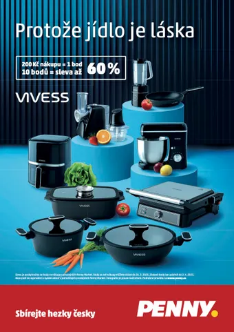 1 bod. Deset těchto bodů pak lze proměnit v atraktivní slevu až 60 % na některý z vybraných produktů z nabízené kolekce VIVESS. Lze je samozřejmě pořídit i bez bodů, a to za plnou cenu. Body lze sbírat až do 26. března 2025 a uplatnit je ještě týden poté, nebo do vyprodání a vydání zásob v jednotlivých prodejnách PENNY po celé České republice. Všechny produkty z nové věrnostní kampaně lze zakoupit exkluzivně ve více než 420 prodejnách PENNY.